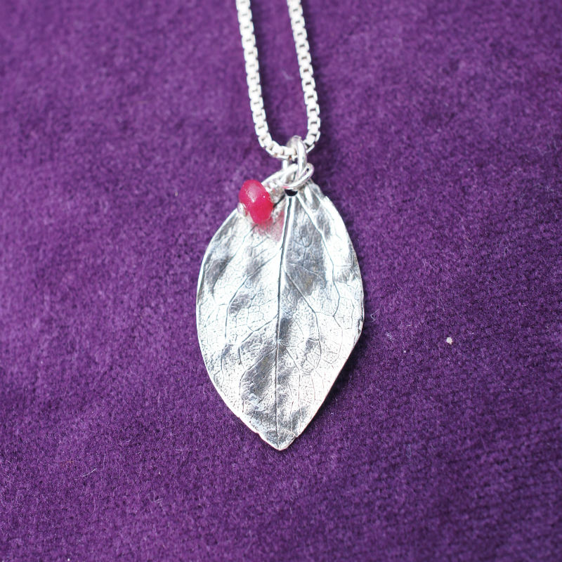 I will carefully coat the leaf in fine silver so that every detail is captured. It is then hung with a Sterling Silver jump ring so you can hang it on a chain (if you would like a Sterling Silver chain included they are also available to purchase in my shop)