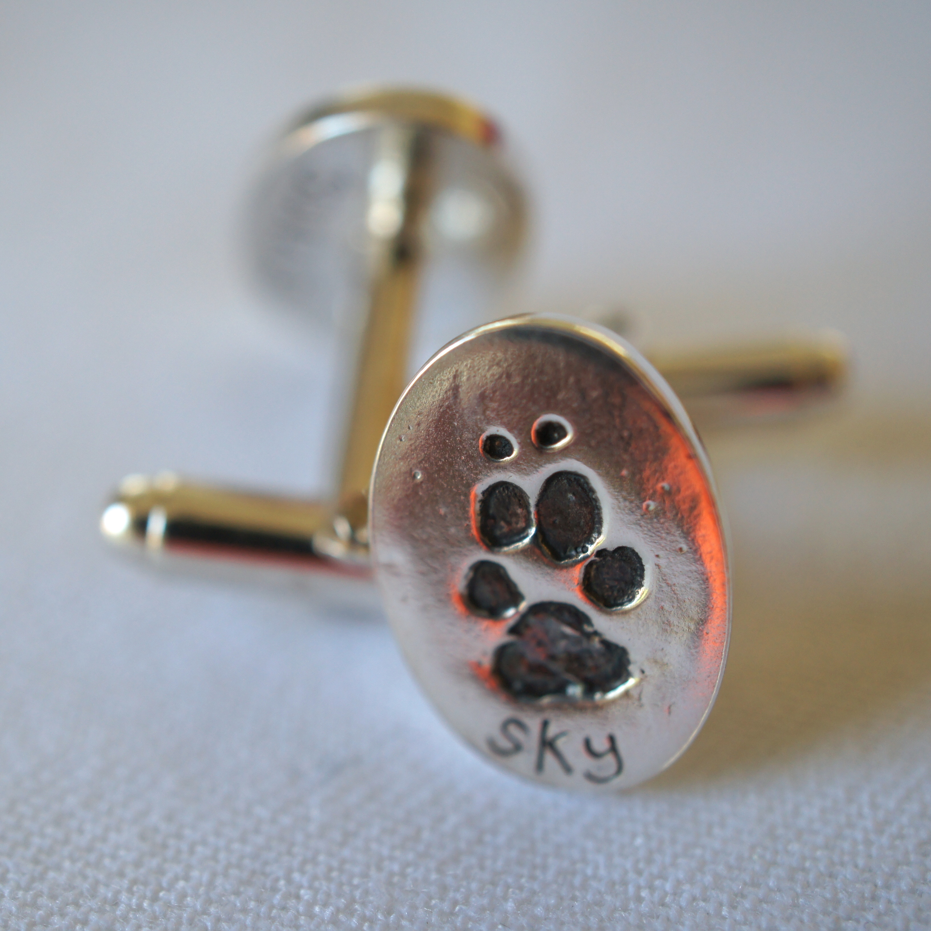 You can have the same print on each cufflink or have two different ones. The cufflinks are lovingly hand made out of fine silver with solid sterling silver swivel fastenings. The perfect accompaniment for a smart daddy’s shirt!